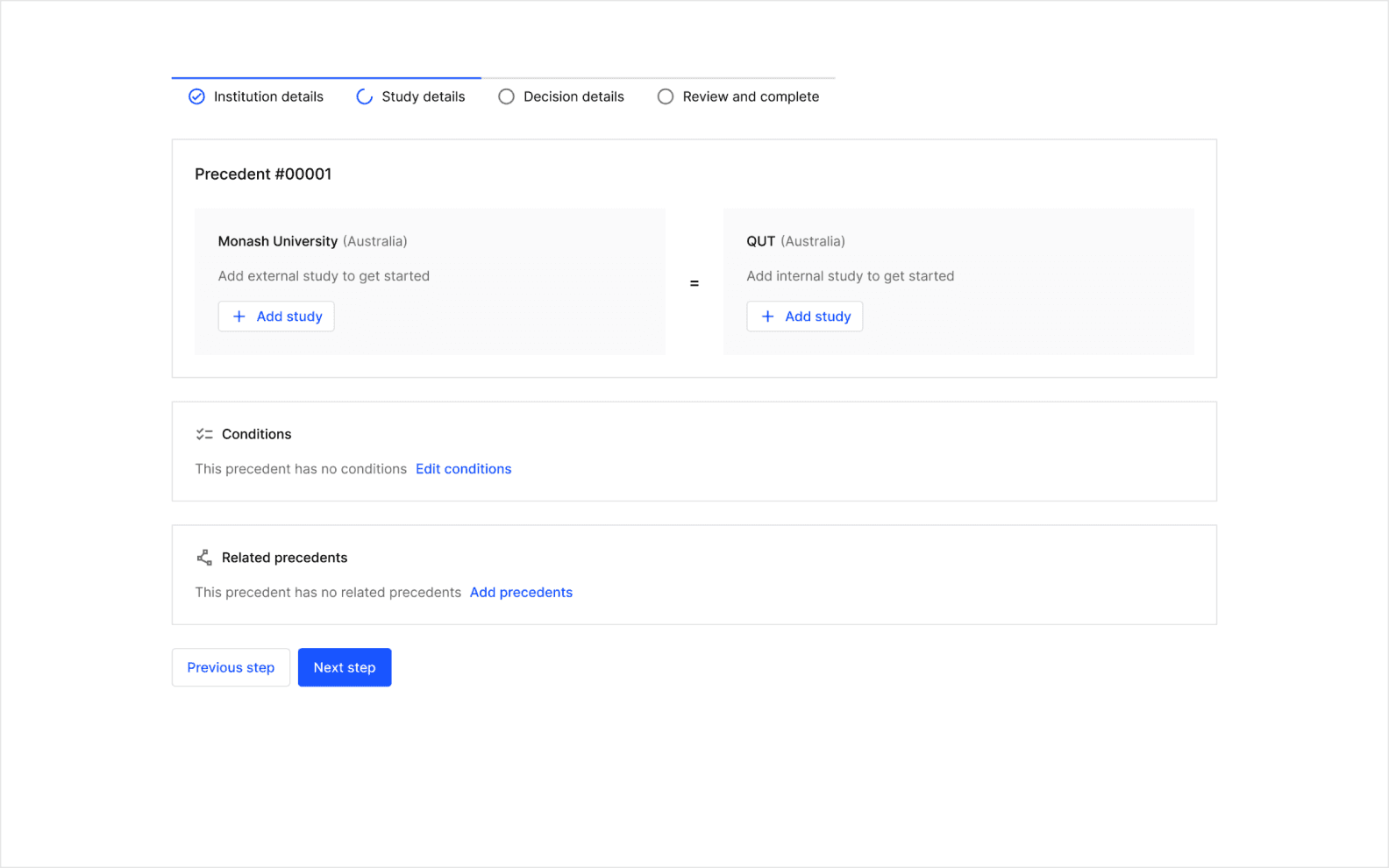 We analysed the data requirements and created task flows to simplify the recording of precedents, making the process more intuitive and efficient.