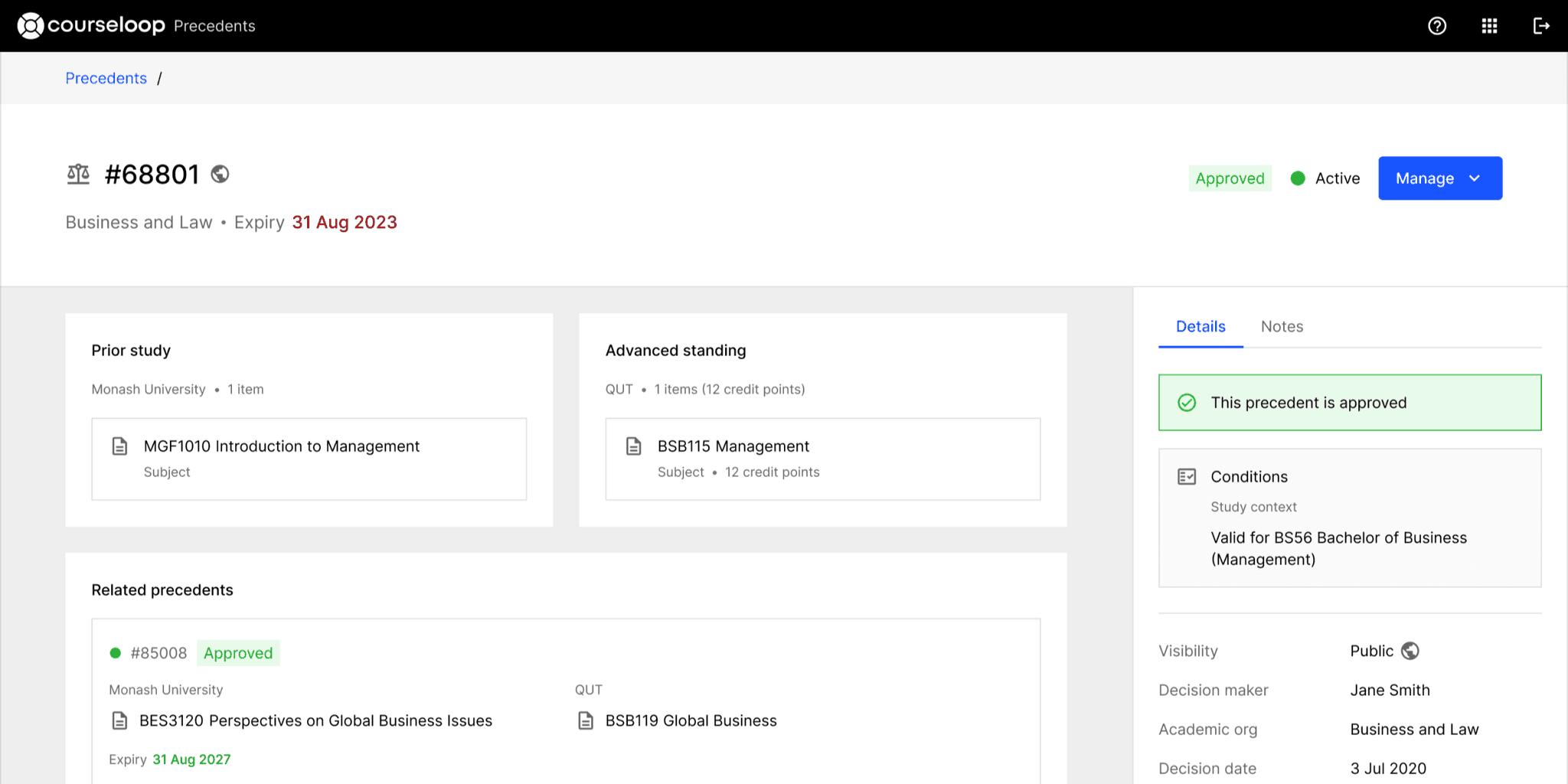 We partnered with CourseLoop to design and develop a powerful Precedents module to streamline the management of advanced standing decisions. By simplifying the complex processes involved in recording, publishing, and managing precedents, we delivered a solution that enhances both administrative efficiency and user experience.