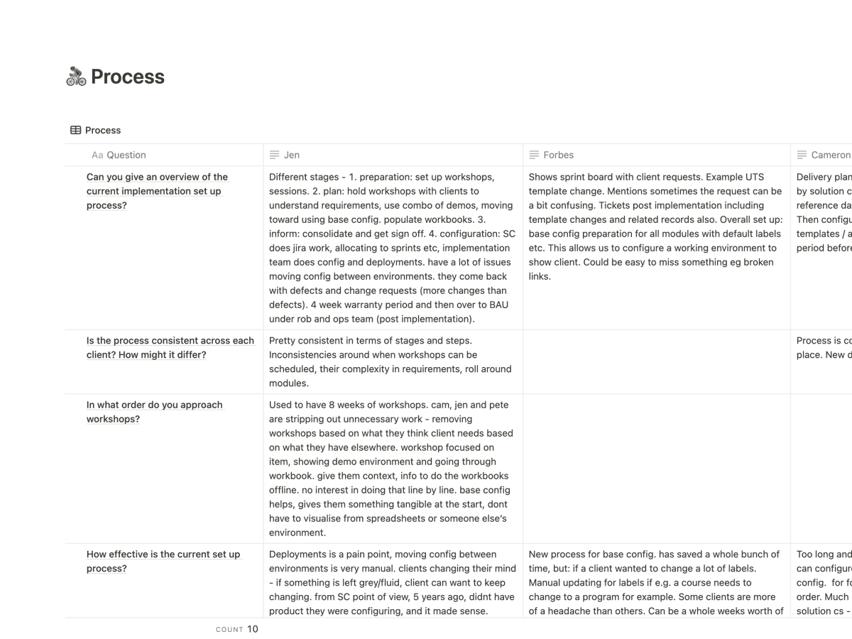 We interviewed the implementation team to gain insights into the current onboarding process, workshop activities, and existing pain points, aiming to optimise the experience through the Self Service Hub.